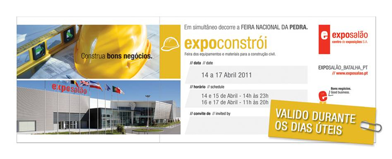 A Arte em Pedra tem bilhetes para si, por favor consulte a a página dos Downloads. A EXPOSALÃO promove, de 14 a 17 de Abril de 2011 a 19.ª edição da EXPOCONSTRÓI a par da 5ª edição da PEDRA – Feira Nacional da Pedra Natural. Reunidos estrategicamente numa só data, estes certames complementam-se entre si e proporcionam, tanto a expositores como a visitantes, fortalecer a competitividade dos seus negócios e usufruir de um maior número de potenciais contactos estabelecidos ao longo do evento.A FEIRA NACIONAL DA PEDRA conta com a participação de 60 empresas que apresentarão as mais recentes novidades em tecnologia, máquinas e equipamentos para a indústria extractiva e transformadora, acessórios e ferramentas. Estarão ainda patentes os diferentes tipos de rochas ornamentais existentes no mercado, nas suas várias formas de apresentação: blocos em bruto, chapas serradas e produto final, como é o caso dos pavimentos, revestimentos, lancis, fogões de sala e até artigos decorativos em pedra.